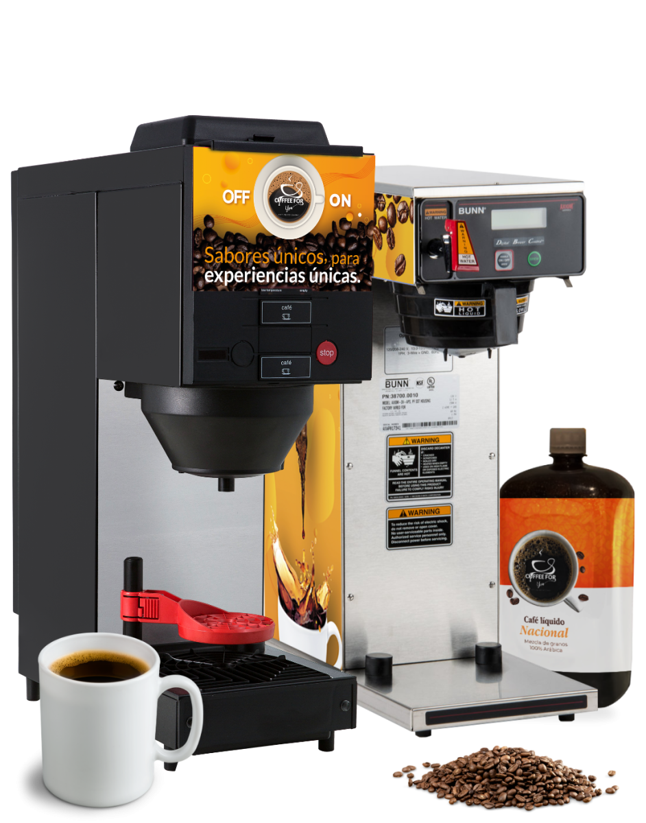 Este equipo ofrece café americano de origen concentrado líquido ( no es jarabe). Un café aromático, equilibrado con buen cuerpo, agradable acidez, dulce y maderosa, características del fino café mexicano.
